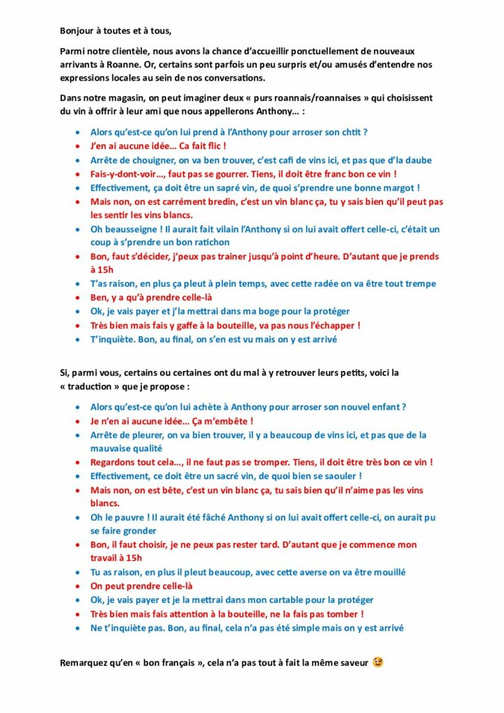 C’est l’occasion de communiquer sur les nouveautés au sein de la boutique, la sélection des vins du mois, les prochains cours d’œnologie… Nous en profitons également pour parler du monde du vin avec une approche originale, humoristique, sarcastique, ironique… En gros, il s’agit de notre défouloir mensuel !