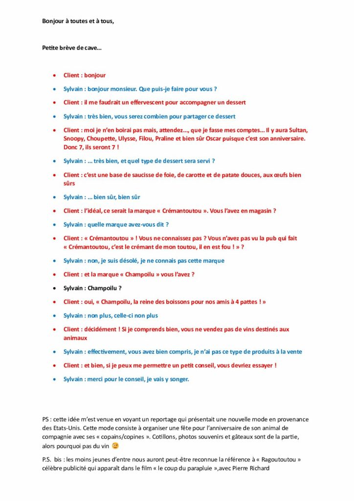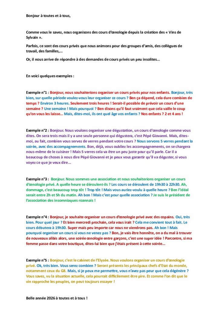TOUS LES MOIS, LES VINS DE SYLVAIN PROPOSE UNE LETTRE D'INFORMATION À SES CLIENTS.